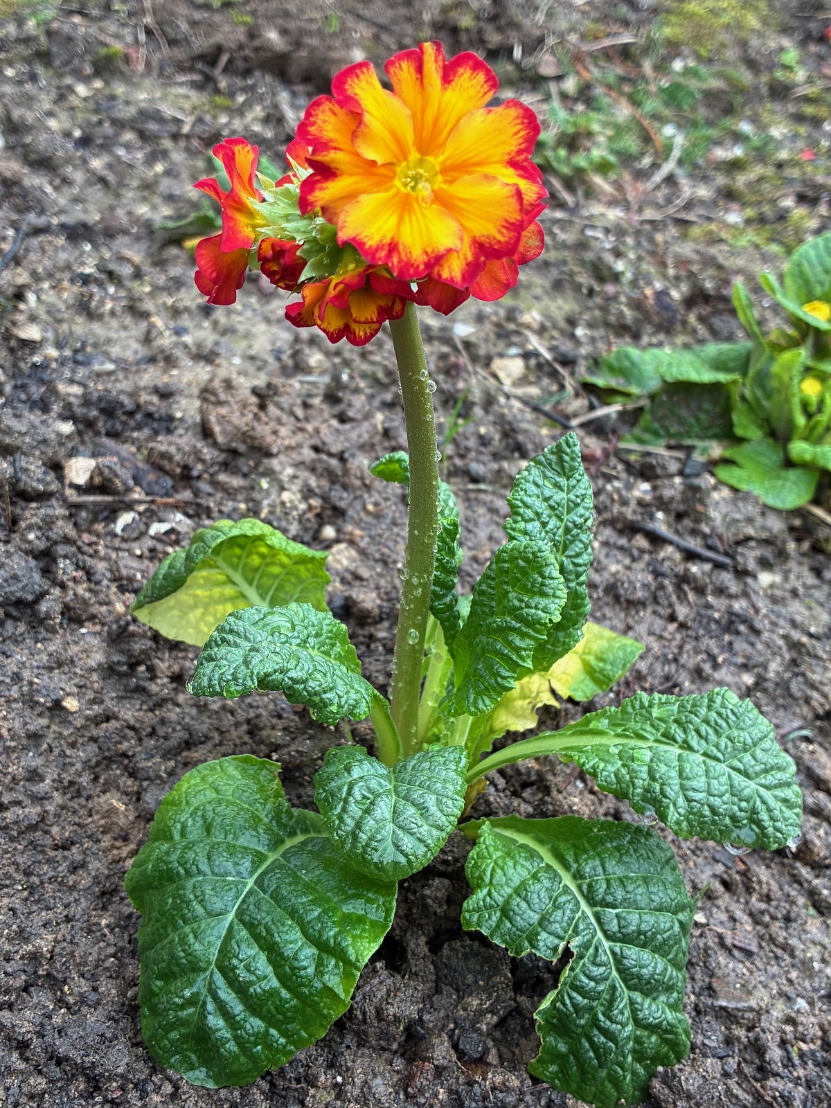 Une primevère polyanthus sans nom identifié, spectaculaire avec sa très haute hampe florale, et ses…