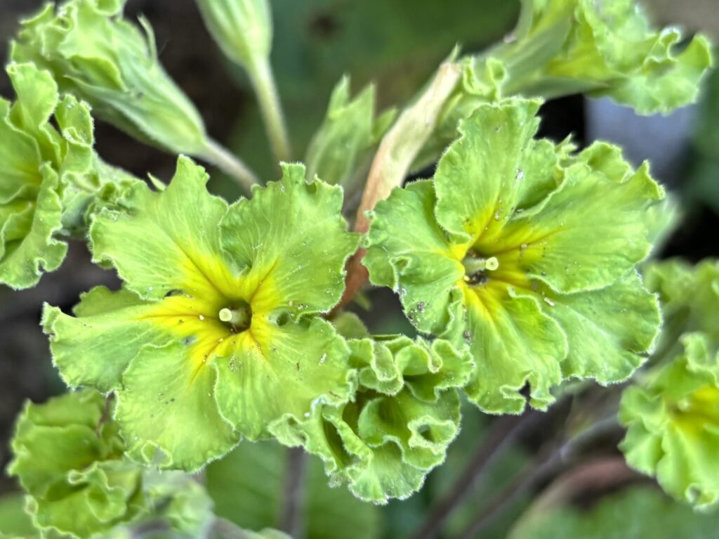 Les plus originales des primevères polyanthus, peut-être : des vertes frisotées, qui fleurissent à la…
