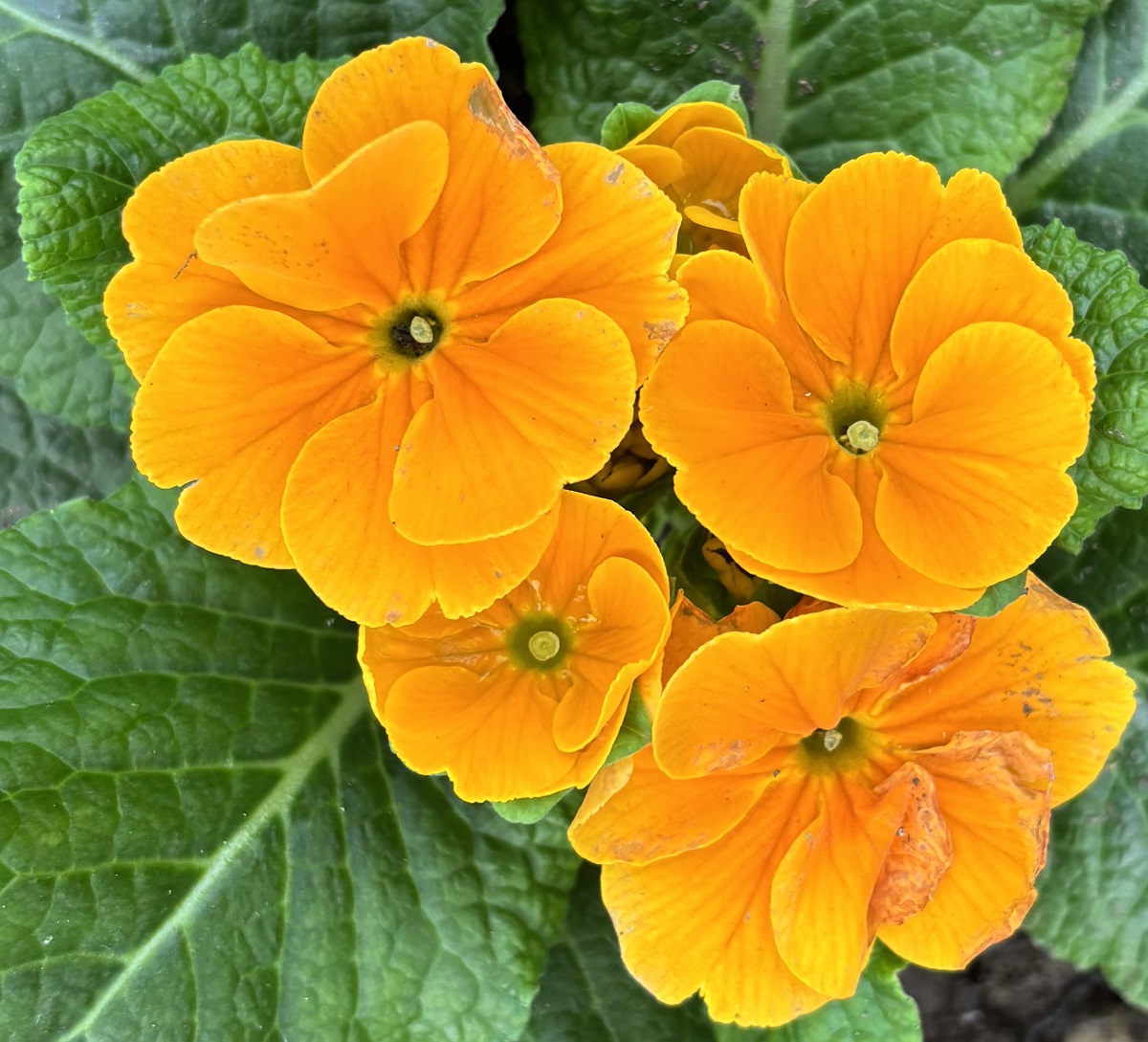 Trouvées aux Pépinières Hébert, à Écardenville-la-Campagne dans l'Eure, des primevères Primus (primevères d'automne) orangées de…