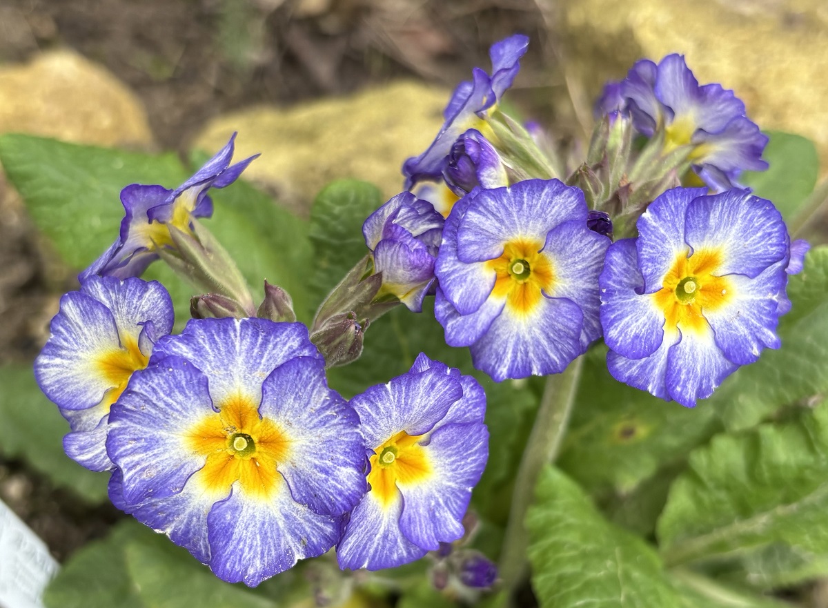 Une primevère de la collection de polyanthus (plusieurs fleurs sur une tige haute) des pépinières…