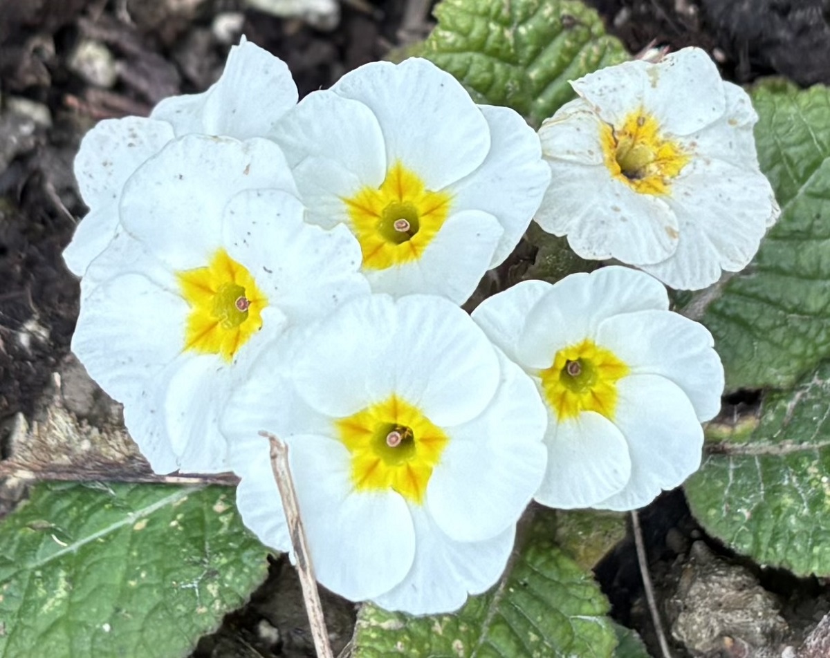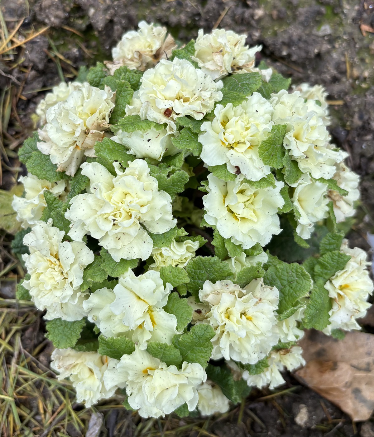 Une grande classique : la primevère de jardinerie acaule blanche. Un cultivar pas très différente…