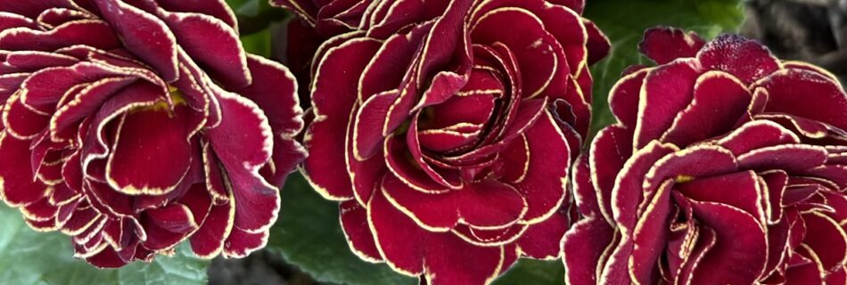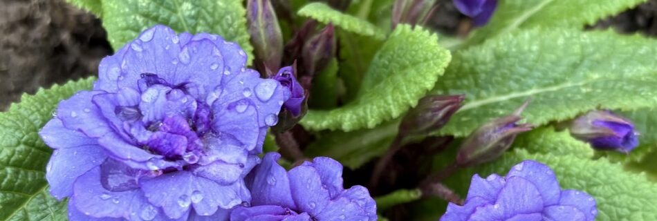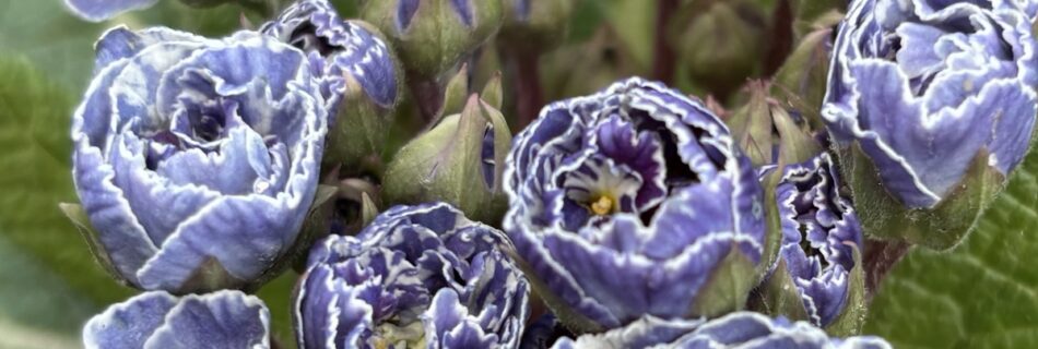 Une gamme exceptionnelle développée par les pépinières Barnhaven, une de plus. Il s’agit ici de primevères doubles au bleu très clair, dotées de légères rayures plus foncées. Les fleurs sont aussi belles en boutons que pleinement déployées. Barnhaven