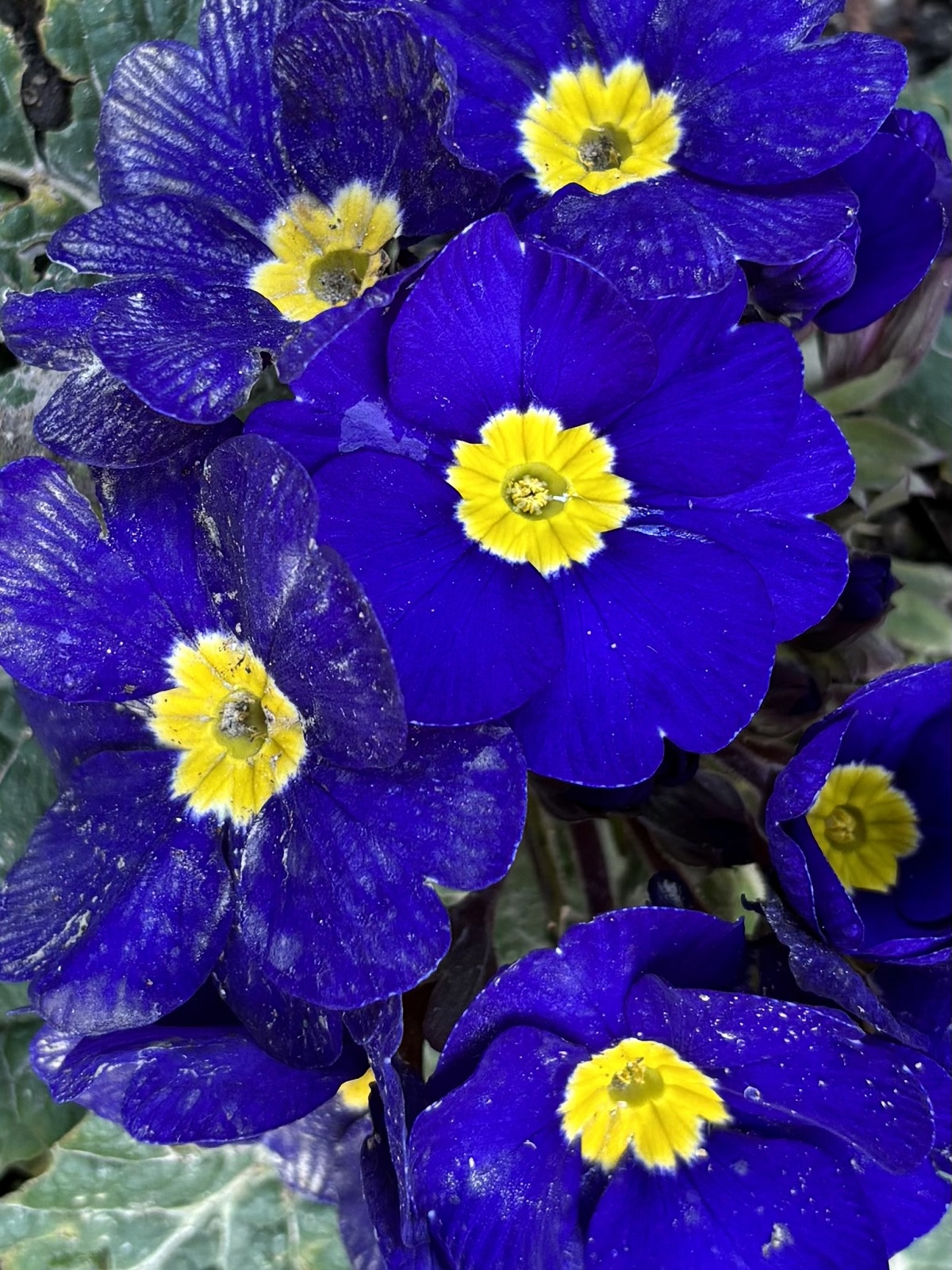 Les grandes primevères acaules de jardinerie. Fréquentes, mais toujours impressionnantes avec leur coloris qu’on ne trouve pas dans la nature, et le contraste saisissant entre le bleu soutenu des pétales et le cœur jaune, surtout quand on les place en abondance dans un massif.