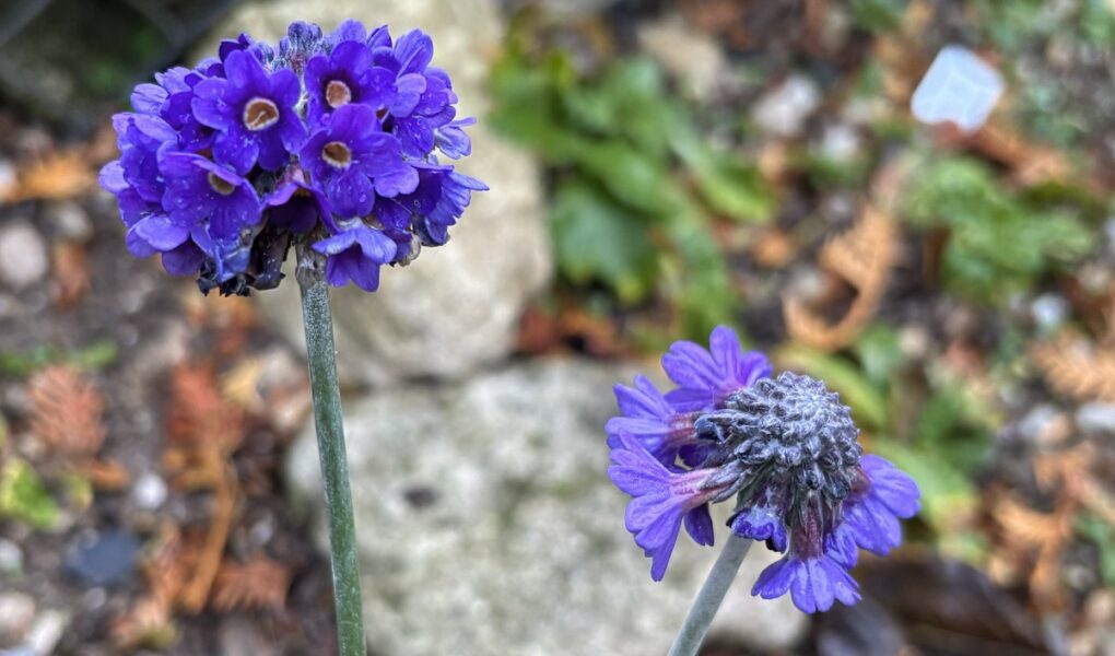L’une des primevères himalayennes les plus attachantes. Les fleurs de la primula capitata, entre bleues et mauves, forment une boule à la manière des primevères denticulées, mais celles du haut tardent à apparaître. De ce fait, la capitata reste durablement chauve, ce qui lui donne un joli aspect légèrement aplati. Elle pousse à la fin du printemps, mais aussi, assez souvent, à l’automne, permettant de profiter de leurs jolies et hautes fleurs au moment où les autres primevères sont endormies. Bien que provenant des hauteurs, elle s’épanouit plutôt bien dans les plaines européennes.