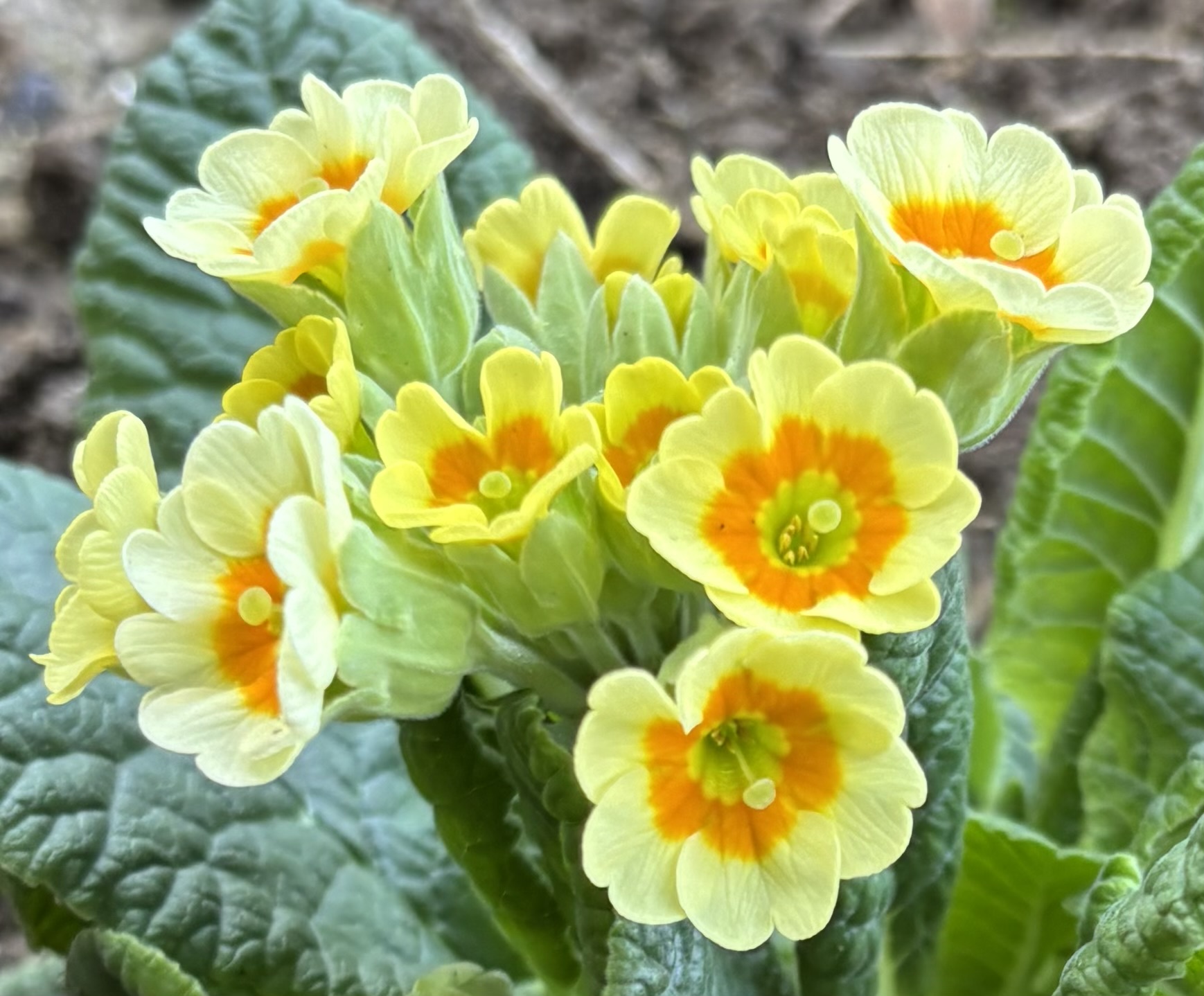 Un polyanthus saisissant qui, très probablement, est un hybride de coucou (primevère officinale, ou primula…