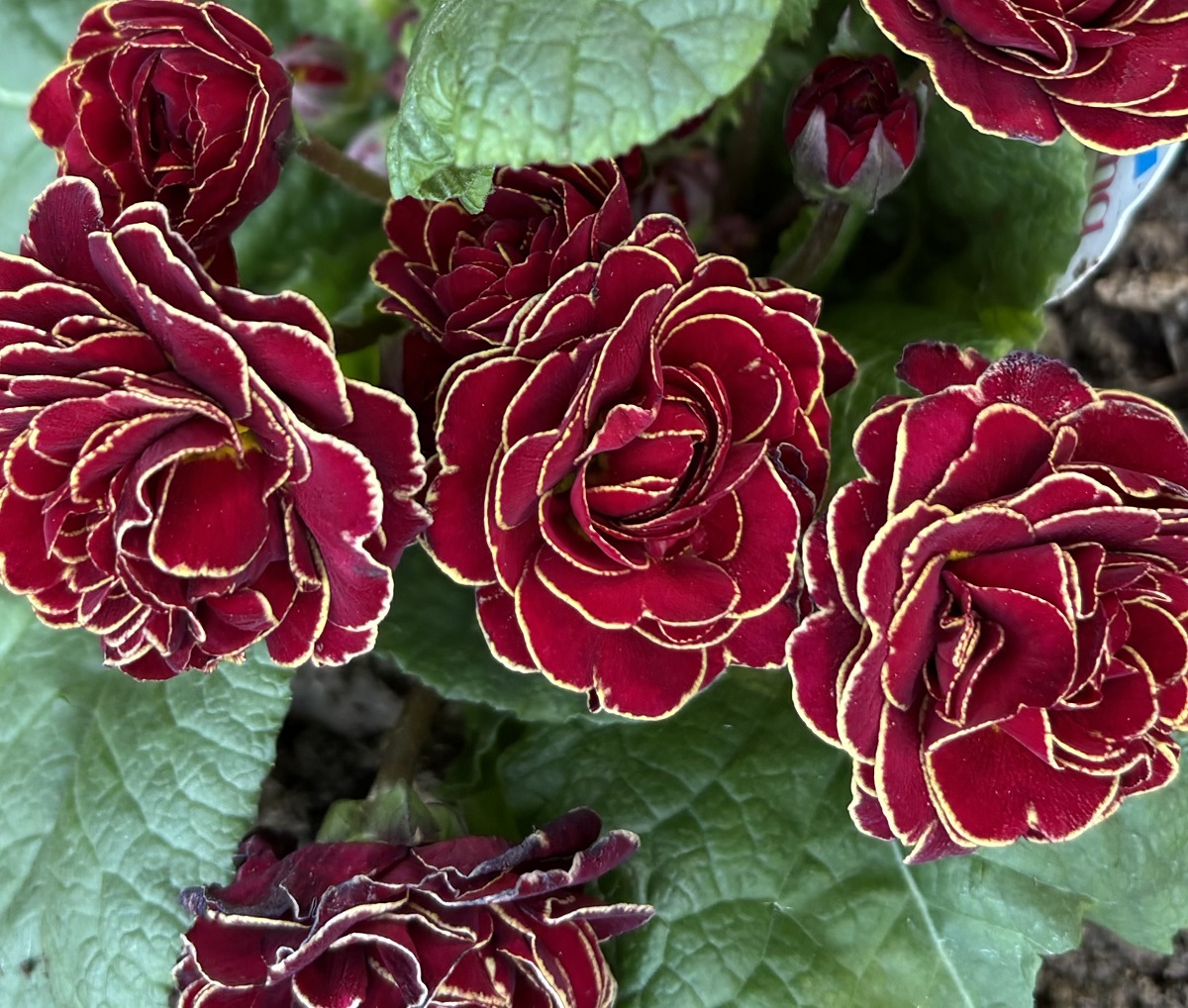 Ces primevères acaules doubles sont d'un rouge profond, avec un élégant et délicat liseré jaune,…